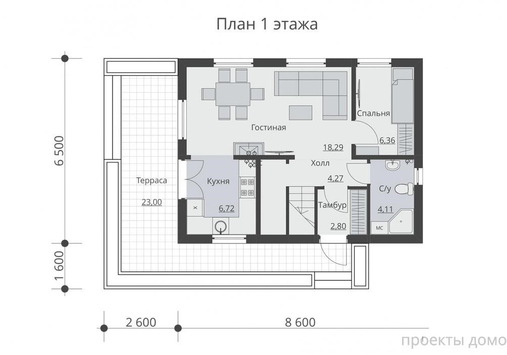 Одноэтажный деревянный дом с мансардой и террасой 9x9 (А-137)