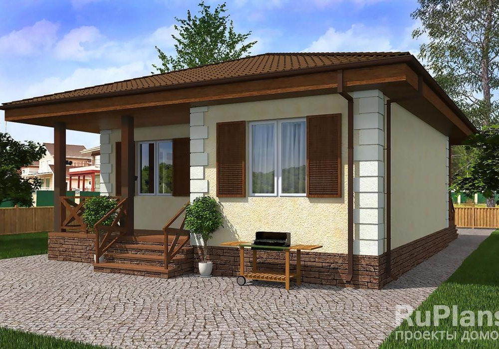 Одноэтажный блочный дом с террасой 11x9 (А-121)